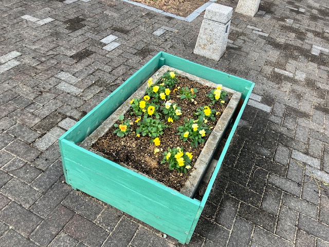 年末に植えた花が生き生き咲いてみなさまの御来園をお持ちしております
